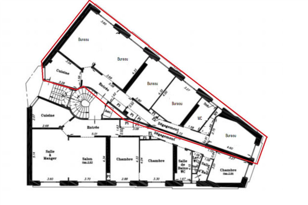Métro La Motte-Piquet-Grenelle, dans un bel immeuble d'angle de très bon standing, à louer bureaux livrés rénovés avec parquet, moulures et cheminée d'une surface de 110m² au 6ème étage avec ascenseur, composés d'une entrée desservant une salle de réuion/open-space (recloisonable), 3 bureaux, une cuisine et un bloc sanitaires.