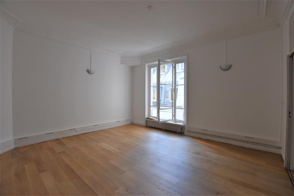 A deux pas de la Place de l'Opéra, dans un bel immeuble Haussmannien, à louer bureaux entièrement rénovés avec parquet, moulures et cheminées d'une surface de 152m² situés au 4ème étage avec ascenseur, se composant d'une entrée/accueil desservant une belle salle de réunion/open-space et 2 bureaux sur rue, un bureau et un open-space sur cour, une cuisine, 2 sanitaire et un espace de stockage. Belle hauteur sous plafond. Câblage informatique, fibre optique.