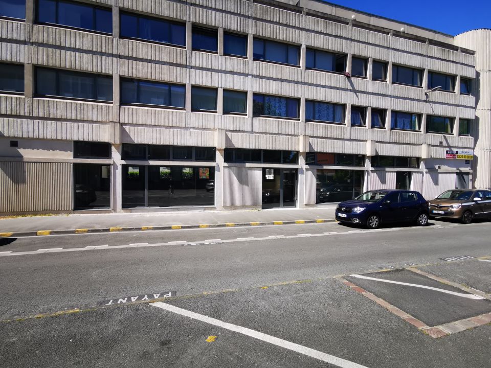 Locaux livrés brut de béton, fluides en attente, vitrines posées.