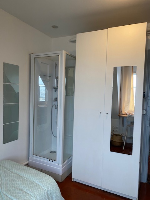Ce bien est loué meublé, disponible immédiatement. Il dispose d’un coin salon/nuit, d’un espace cuisine avec tous les équipements nécessaires (plaques, vaisselle, poêles, casseroles, couverts …) ainsi qu’un espace d’eau, les toilettes sont communes à trois chambres.