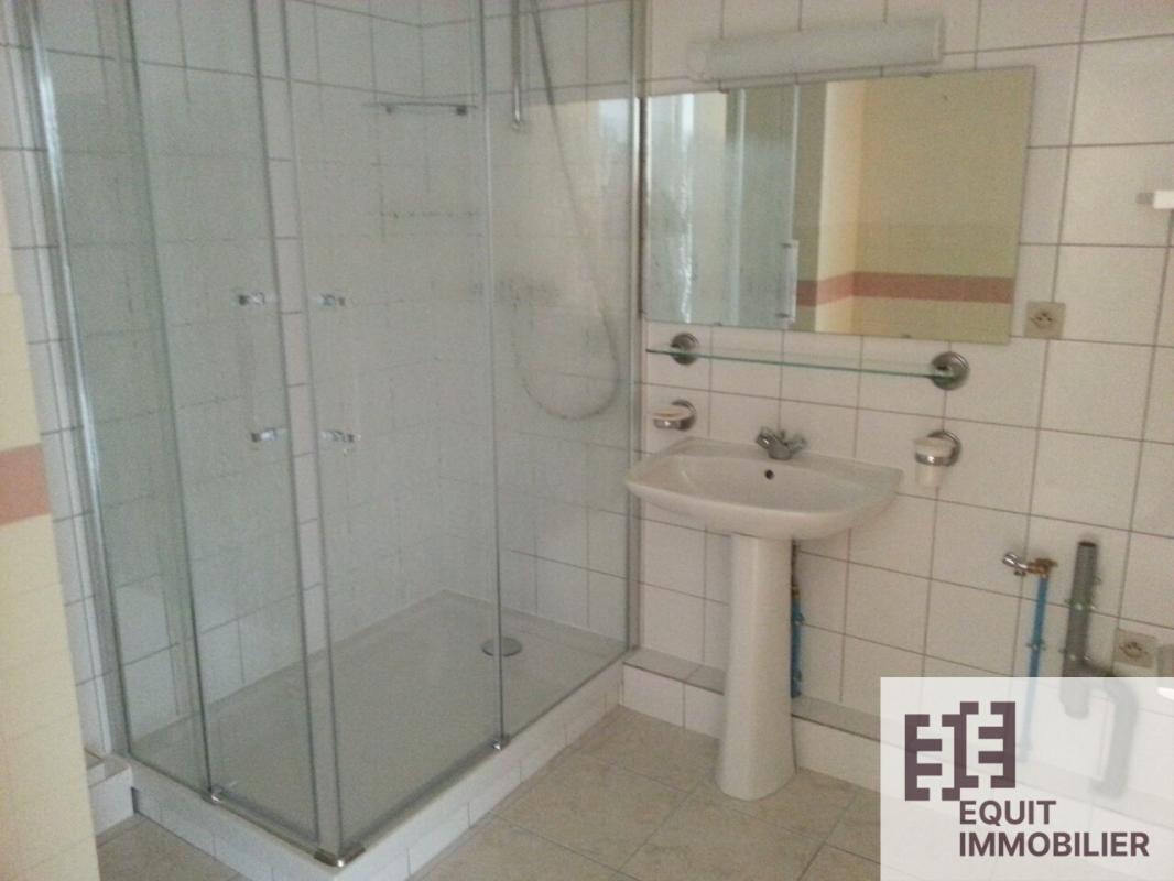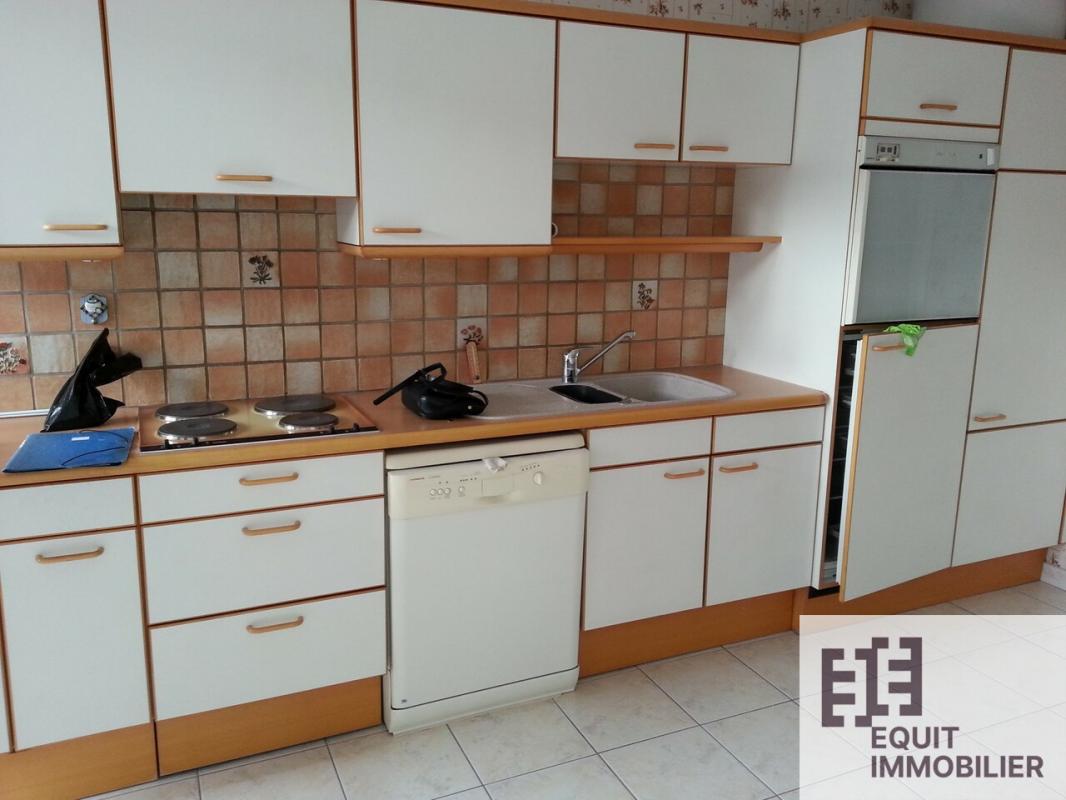 A louer, type 3 de 83m² environ, comprenant entrée avec placard, cuisine équipée avec balcon, grand séjour, 2 chambres dont une avec placard, salle de douches, wc. Cave et garage. Chauffage individuel électrique.