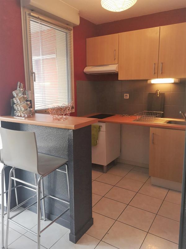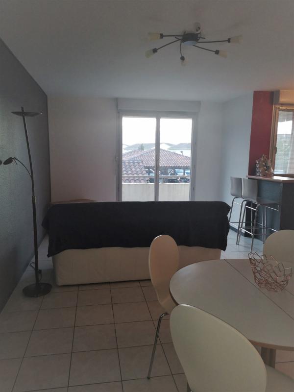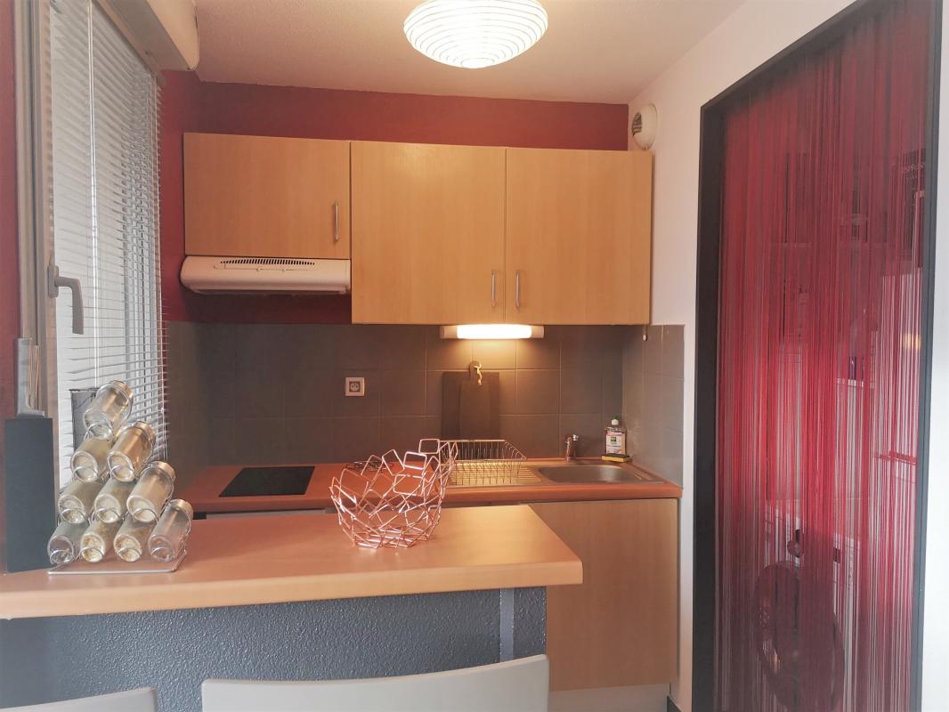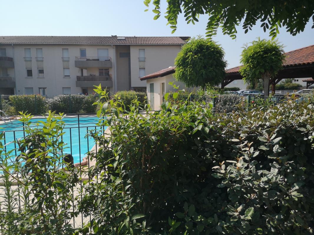 Dans résidence avec piscine, Apt. T2 de 48 m² comprenant un séjour avec kitchenette, une chambre, une salle de bains, un wc. Nombreux rangements et un balcon. 1 emplacement de parking couvert.