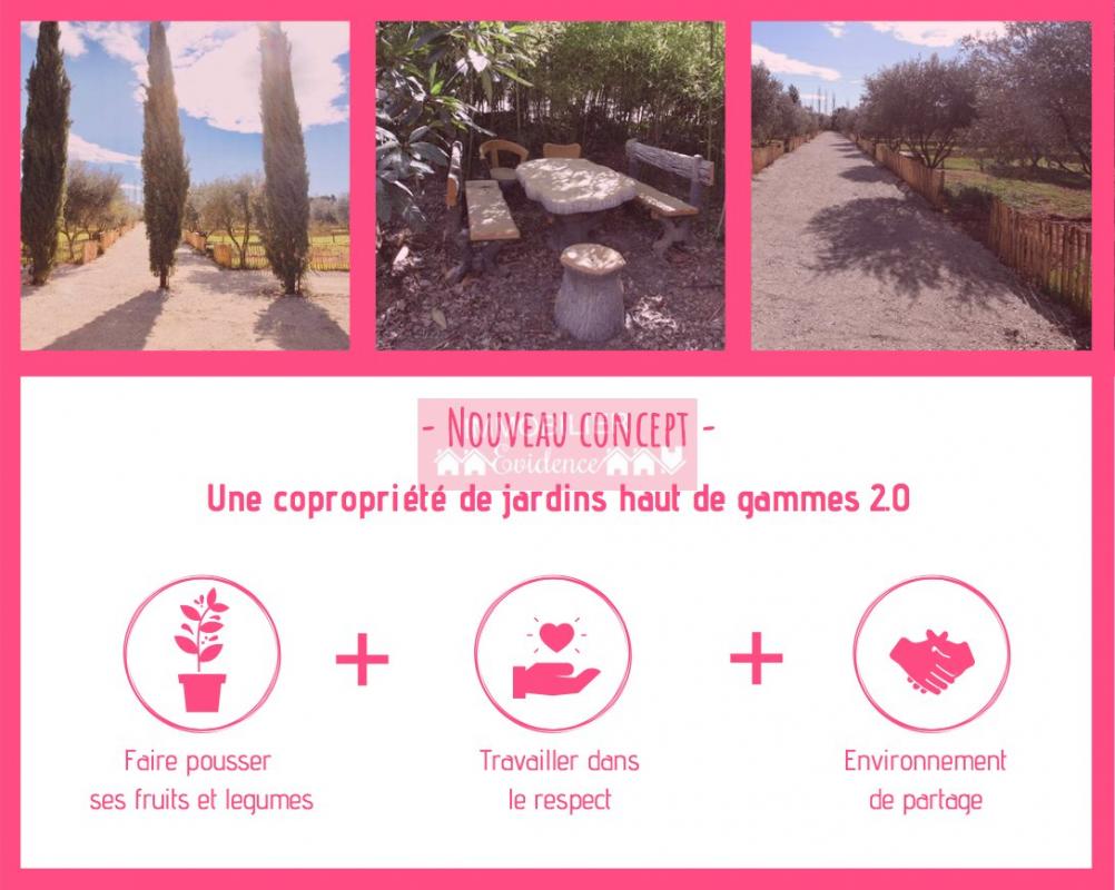 N'avez-vous jamais rêvé d'avoir votre propre jardin à deux pas de Montpellier? Vous pourrez y faire pousser vos fruits et légumes, travailler une parcelle de terre dans le respect de l'hygiène de vie et de l'environnement et surtout vous vous trouverez dans un endroit privilégié où le partage est moteur. Une copropriété qui vous facilitera la tâche, profitez de nombreux avantages tels que la mise à disposition de matériel agricole, d'aide et de conseils ainsi qu'un accès à l'eau et l'électricité pour chaque parcelle. Vous profiterez même d'un bassin de baignade naturel, d'oeufs frais à récolter directement du poulailler ou encore de la mise à disposition de vélos pour de belles balades en famille ! Un espace unique, privatif et sécurisé Les plus niveau sécurité : une caméra de surveillance privative actionnable depuis votre smartphone, une surveillance de l'ensemble par un régisseur qui habite sur place, un parking pouvant accueillir des véhicules électriques.. Des jardins 2.0 grâce à une programmation à distance et/ou en fonction de la météo de l'arrosage de votre jardin ainsi qu'un accès wifi sur tout le terrain.