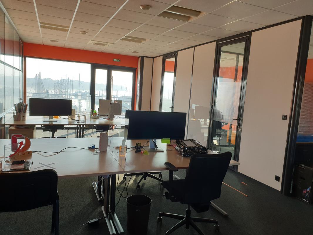 Dans un ensemble immobilier en copropriété, au 1er étage, un plateau de bureaux de 125 m² environ, accessible PMR avec terrasse et vue mer. Prestations : Climatisation
