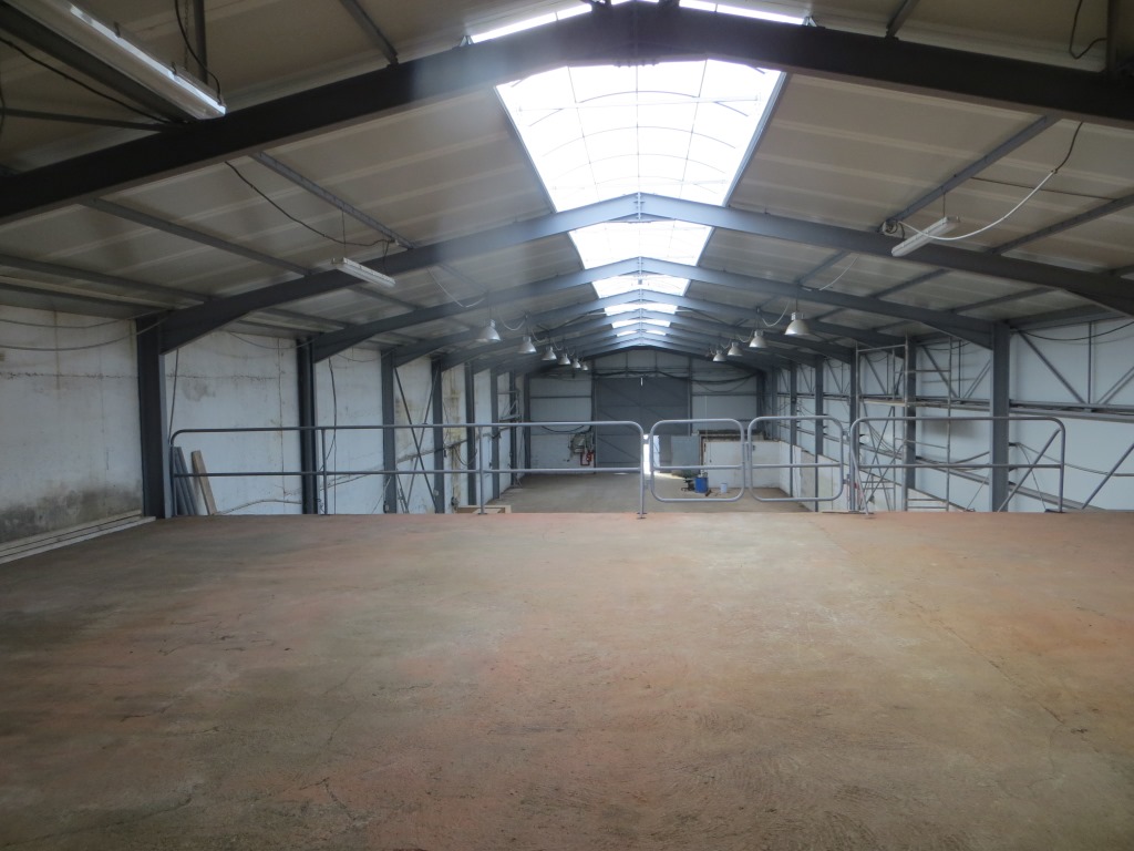 Un bâtiment indépendant de type industriel, en partie parpaings et partie bardage double peau, toiture bac acier isolé phoniquement, comprenant une partie bureaux sur deux niveaux et une partie atelier-stockage. Prestations : - porte coulissante grand gabarit