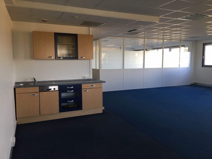 Ce lot de 145 m² PCI se situé au 1er étage avec ascenseur. SAS, ascenseur, Interphone, sol moquette en dalles, murs peints blancs, faux-plafond avec luminaires, climatisation et chauffage réversibles, baie de brassage, plinthe périphérique avec câblage informatique, climatisation et chauffage réversibles, kitchenette équipée ( et avec lave vaisselle), sanitaires H/F privatifs. L'immeuble est raccordé à la fibre optique .