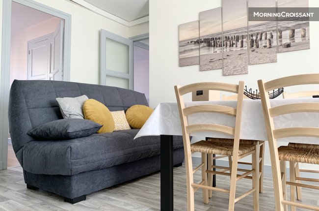 Voyagez tout confort grâce aux équipements présents dans l’appartement, tels qu’une télévision, des équipements pour la cuisine (cafetière Nespresso, réfrigérateur, micro-onde, bouilloire, plaque de cuisson à gaz, grille pain, ménagère complète, etc...), de nombreux rangements (penderie, cintres, placard), un sèche-cheveux, fer planche à repasser et étendage. Du linge de lit et des serviettes sont à votre disposition pour 6 personnes à l’arrivée.