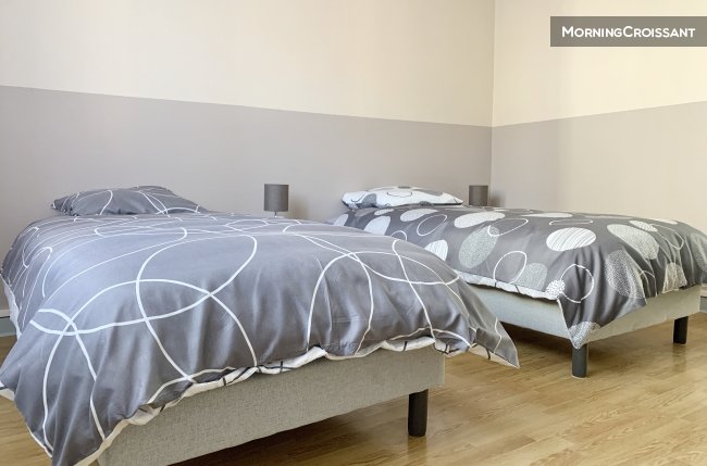 - 1 chambre avec 2 lits une place en 0,90 cm, rangement et bureau